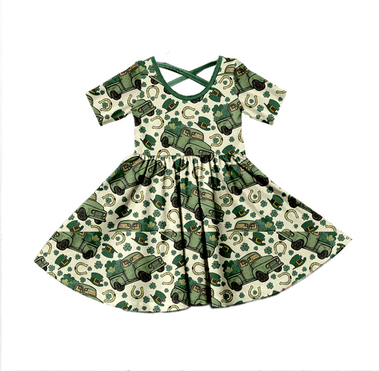Baby Girls St Patrick Day Short Sleeve Cars Knee Length Dresses Preorder(moq 5)