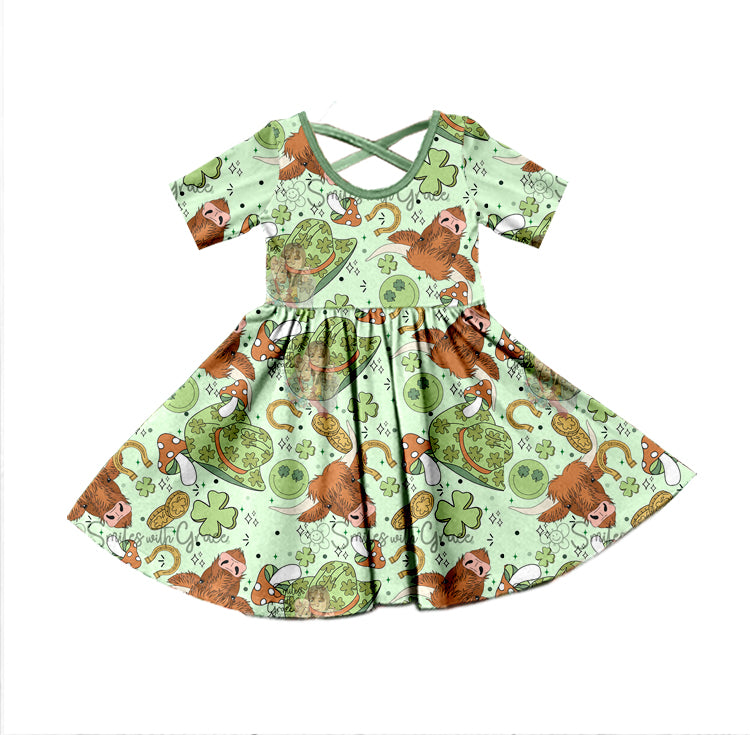 Baby Girls St Patrick Day Short Sleeve Quatrefoil Knee Length Dresses Preorder(moq 5)