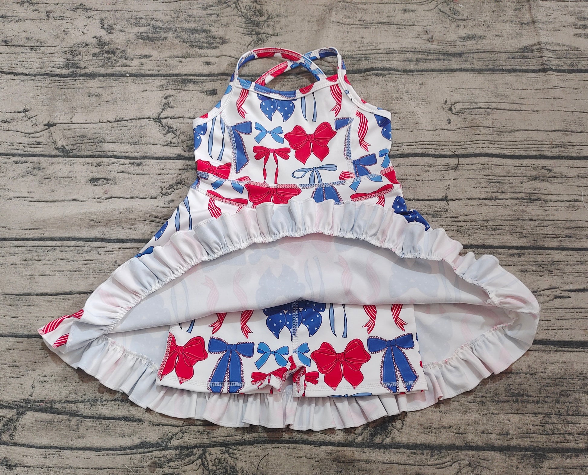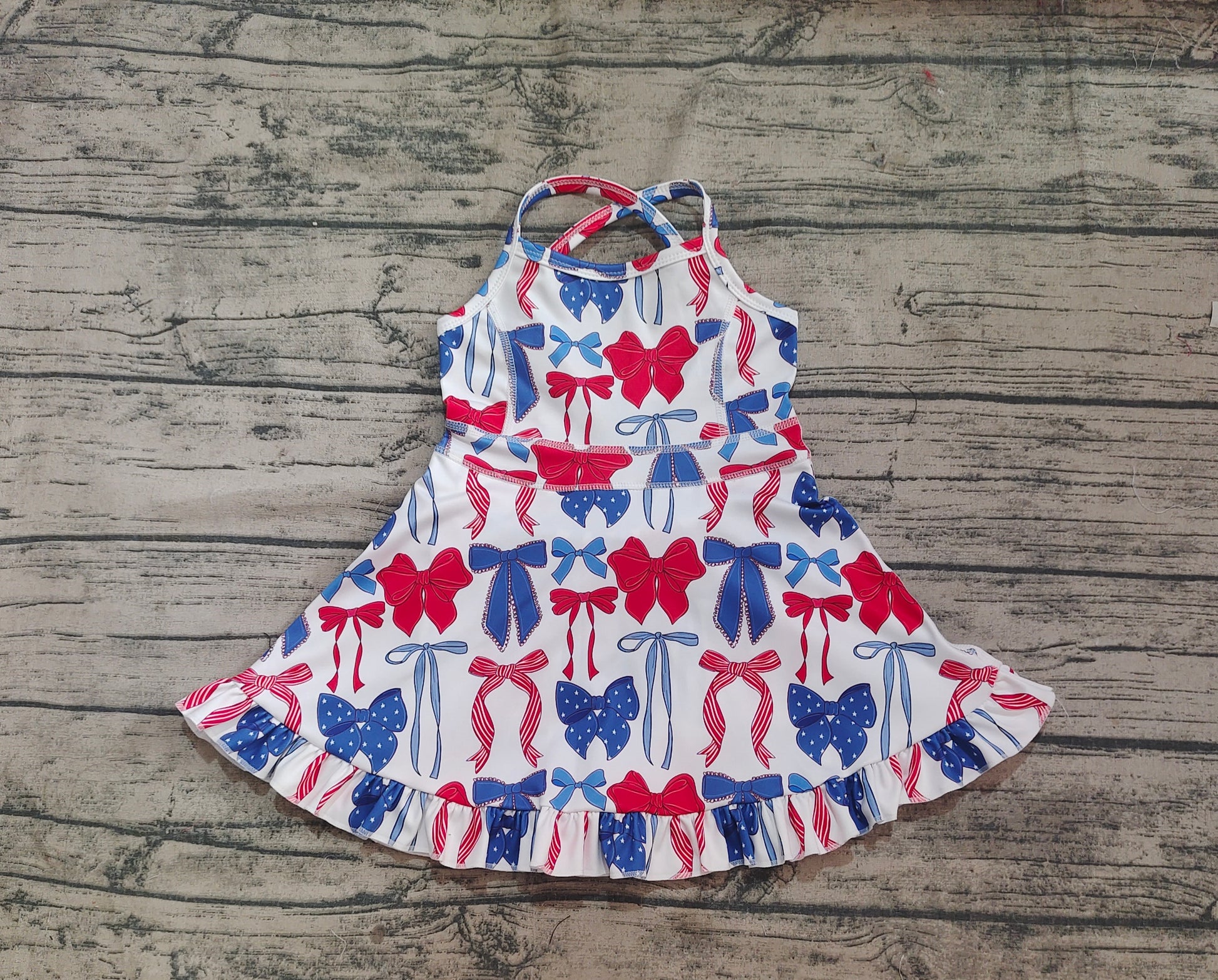 Baby Girls Strap Blue Red Bows 4th Of July Yoga Active Knee Length Dresses