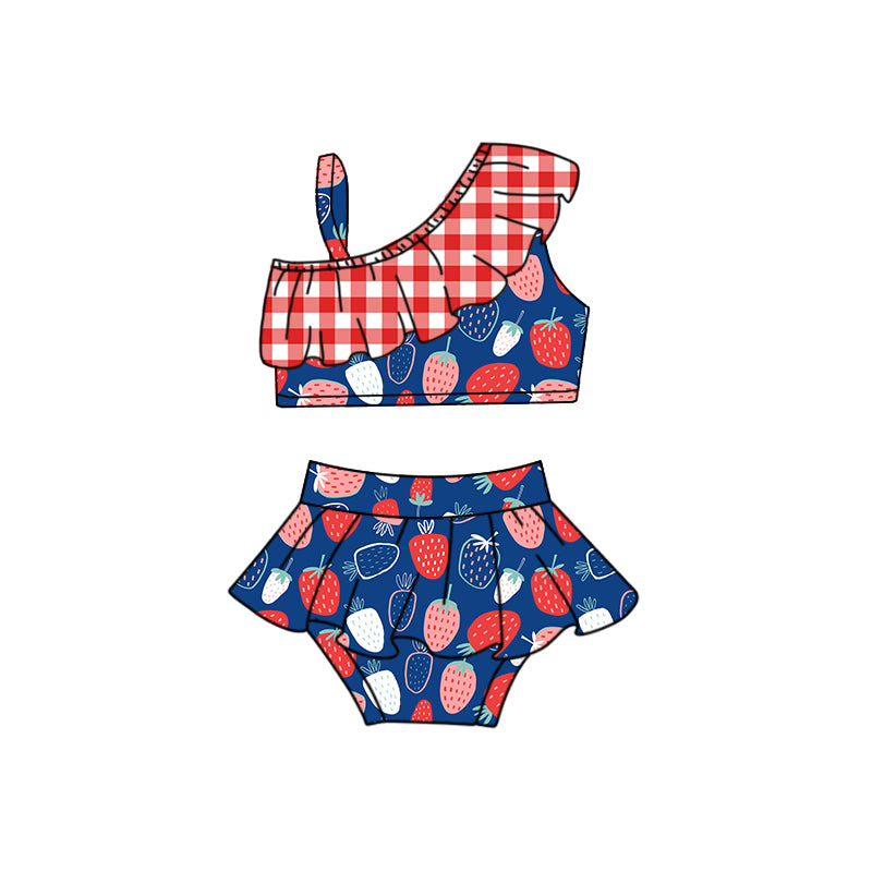 Baby Girls Strawberry Two Pieces Ruffle Swimsuits preorder(moq 5)