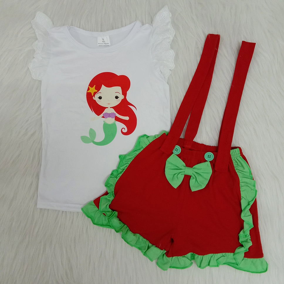 Baby girls summer mermaid suspender shorts sets