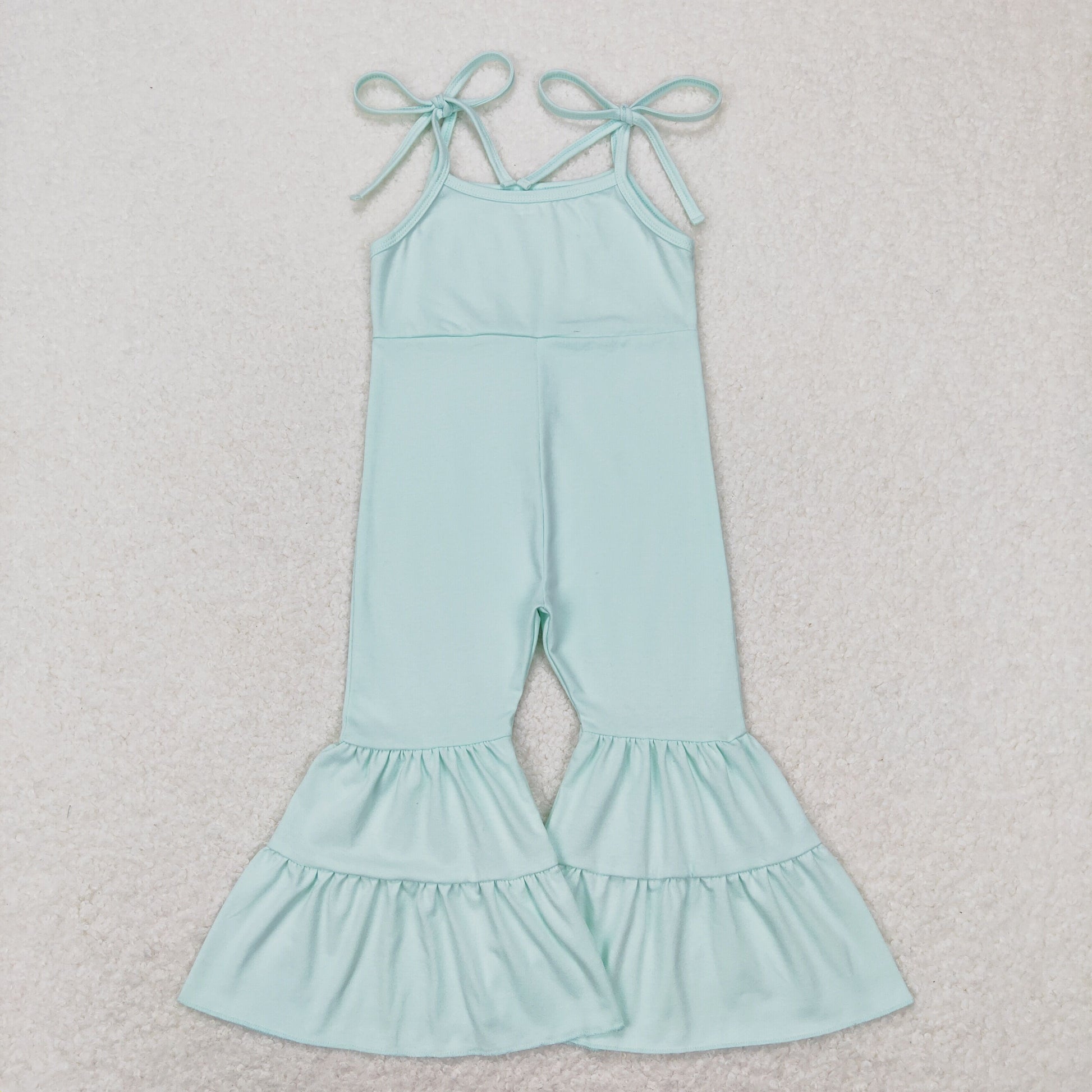Baby Girls Toddler Solid Color Summer Cotton Straps Bell Pants Jumpsuits
