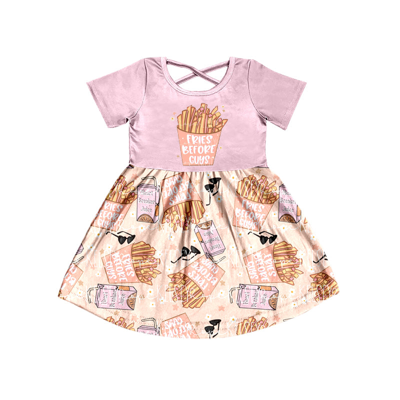 Baby Girls Valentines Fries Pink Short Sleeve Knee Length Dresses Preorder(moq 5)