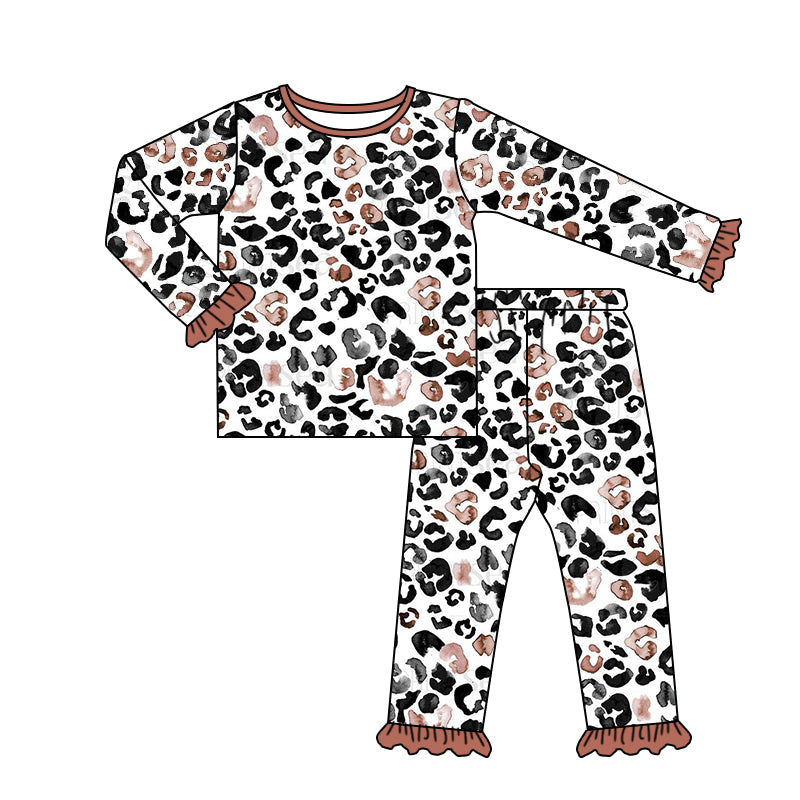 Baby Girls Valentines Leopard Hearts Tee Pants Pajamas Clothing Sets Preorder(moq 5)