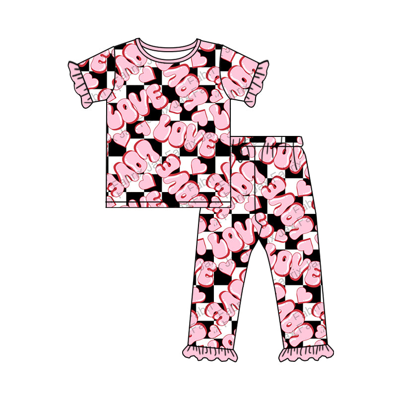 Baby Girls Valentines Love Shirt Pants Pajamas Clothing Sets Preorder(moq 5)