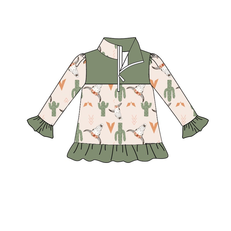 Baby Girls Western Cow Cactus Ruffle Pullover Tops Preorder(moq 5)