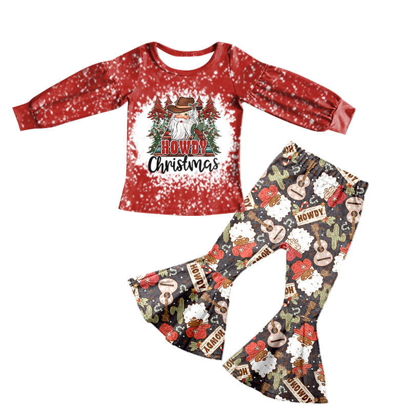 Baby Girls Western Howdy Christmas Bell Pants Clothes Sets preorder(moq 5)