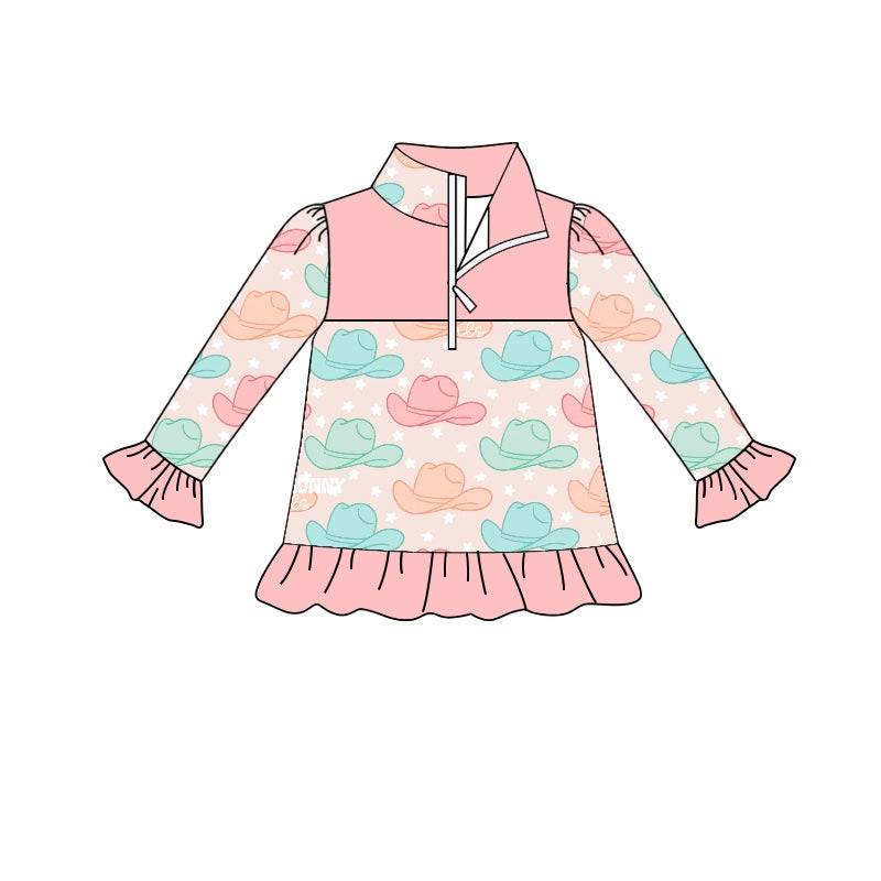 Baby Girls Western Pink Hats Ruffle Pullover Tops Preorder(moq 5)