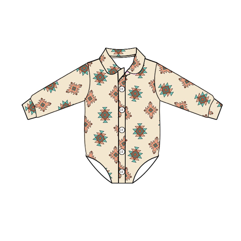Baby Infant Boys Western Aztec Long Sleeve Rompers preorder(moq 5)