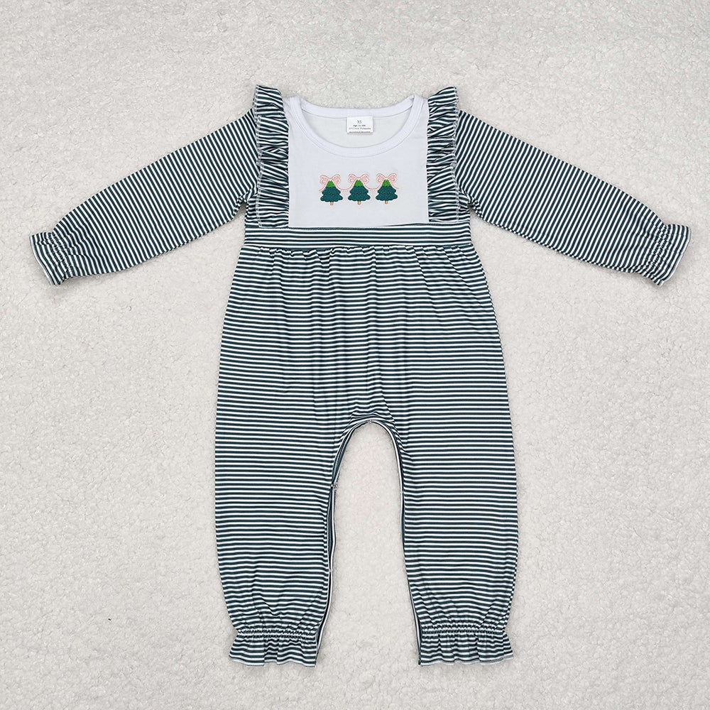Baby Infant Girls Christmas Green Stripes Trees Rompers
