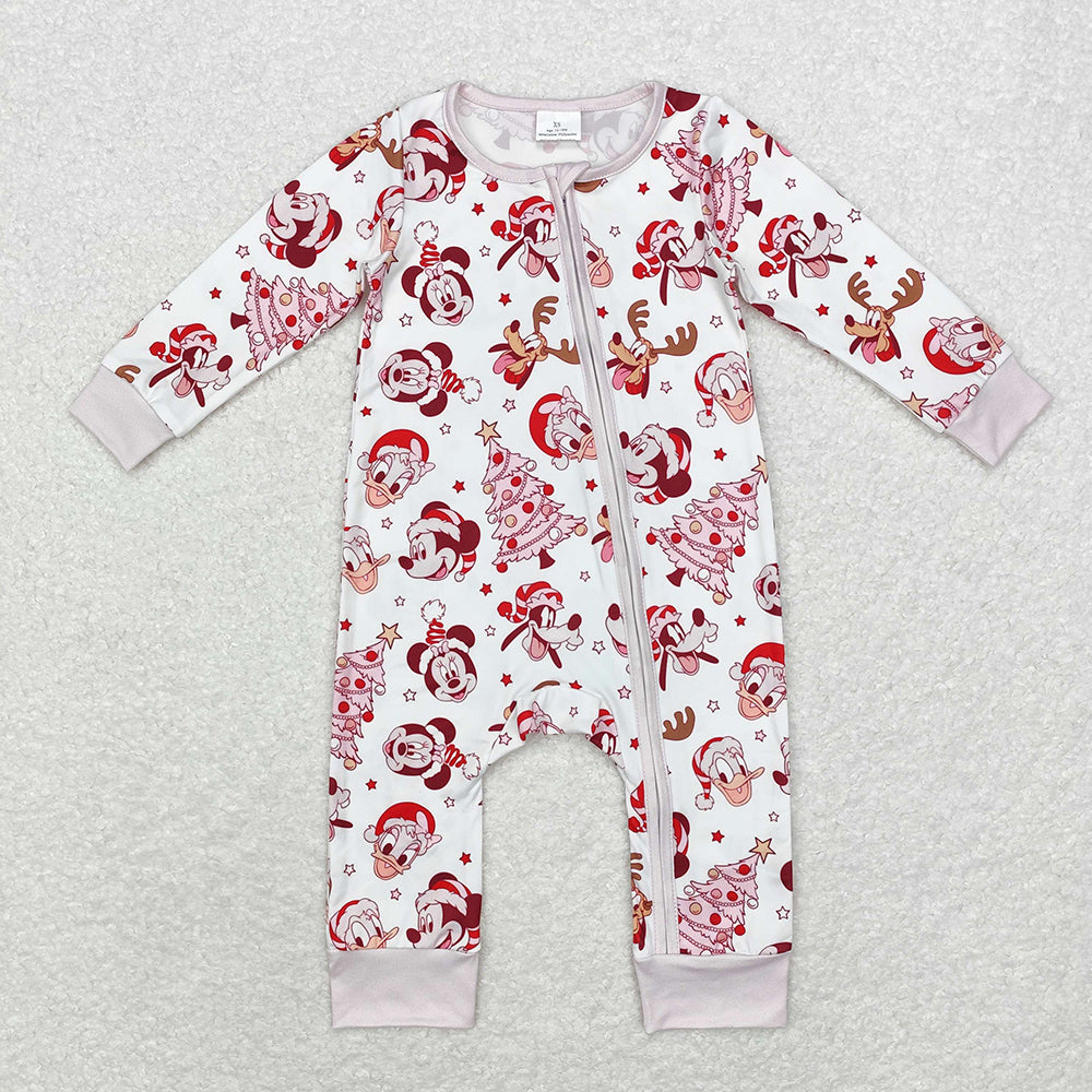 Baby Infant Girls Christmas Trees Cartoon Bamboo Zip Rompers