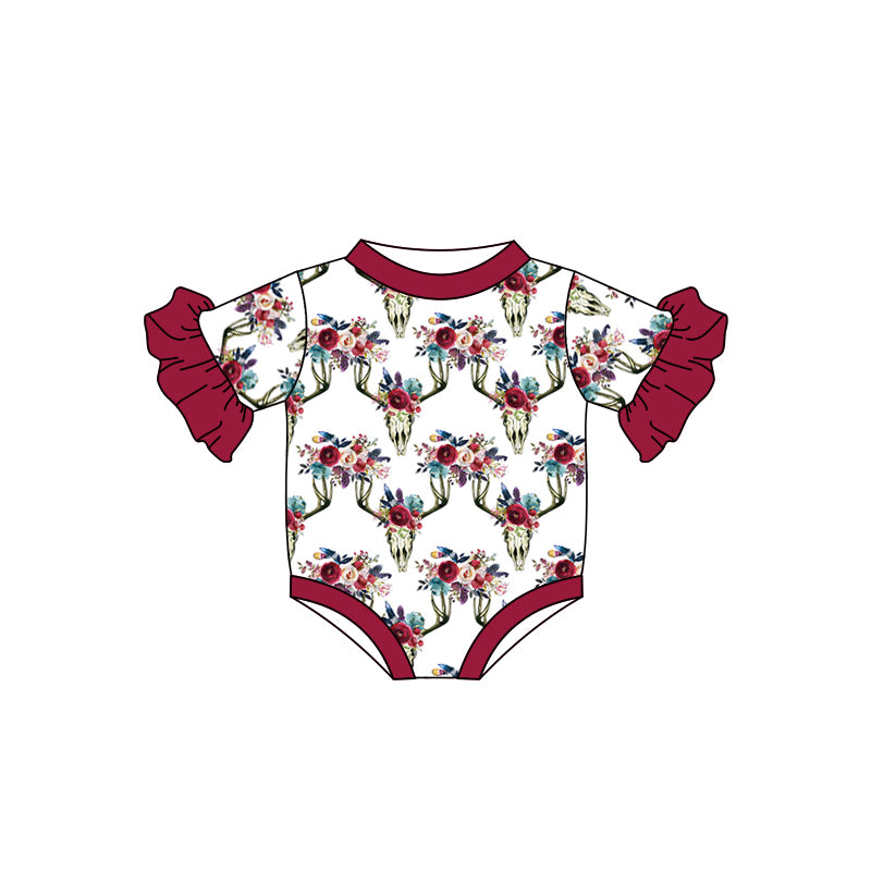 Baby Infant Girls Cows Flowers Western Short Sleeve Rompers preorder(moq 5)