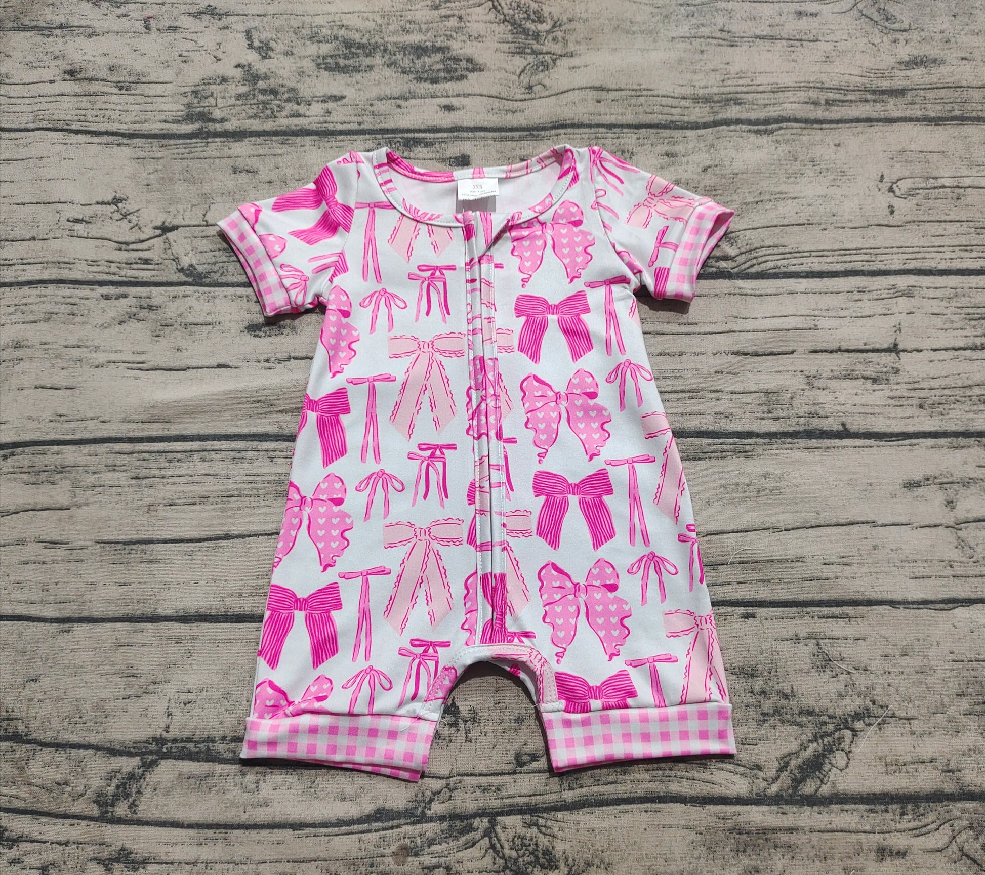 Baby Infant Girls Pink Bows Zip Short Sleeve Rompers