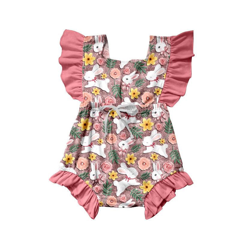 Baby Infant Girls Pink Easter Flowers Rabbit Sleeveless Rompers preorder(moq 5)