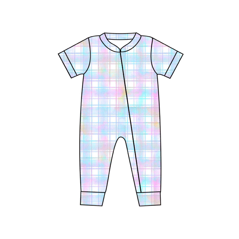 Baby Infant Kids Easter Plaid Colorful Short Sleeve Rompers preorder(moq 5)