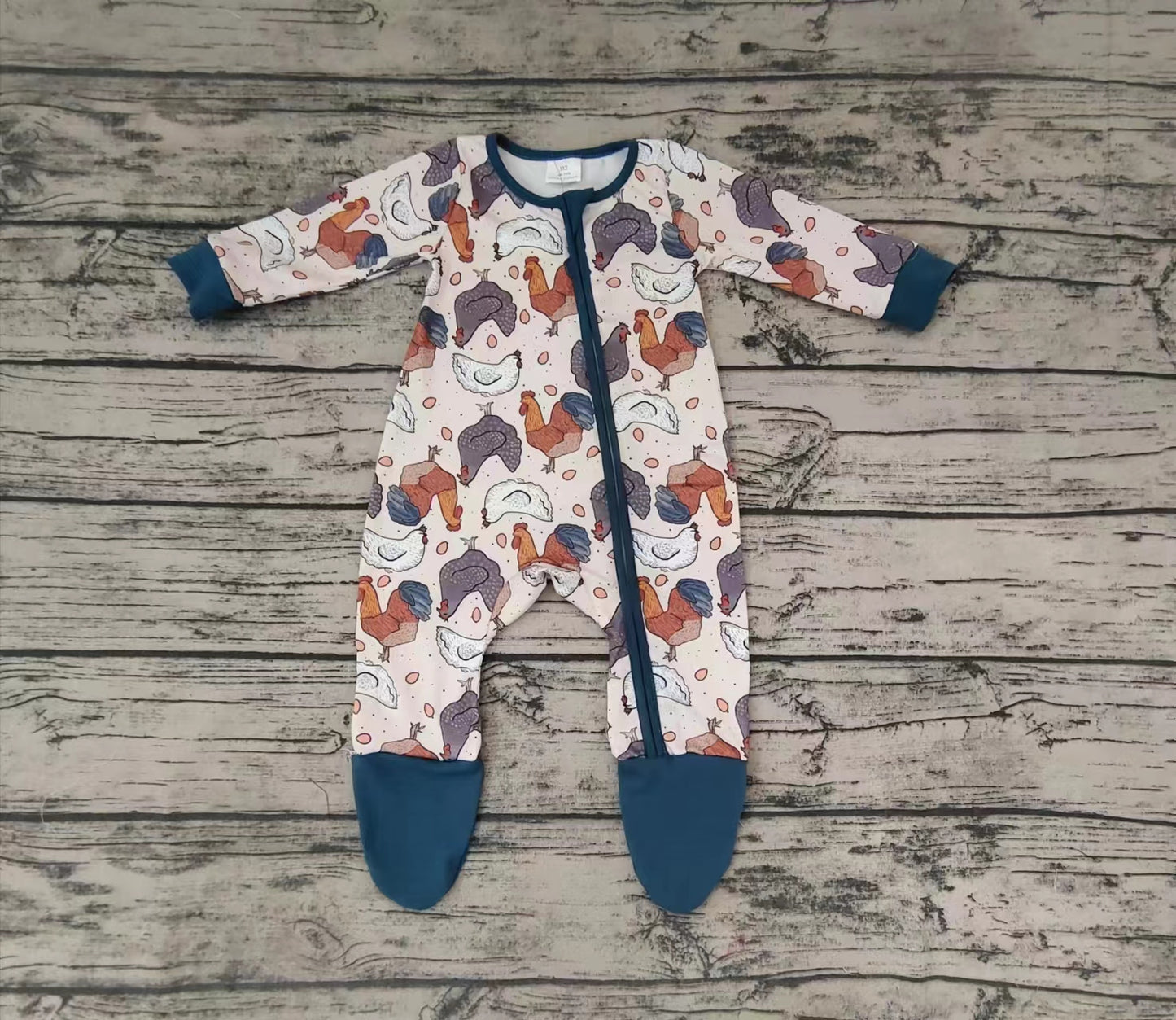 Baby Infant Long Sleeve Farm Chicken Footie Rompers