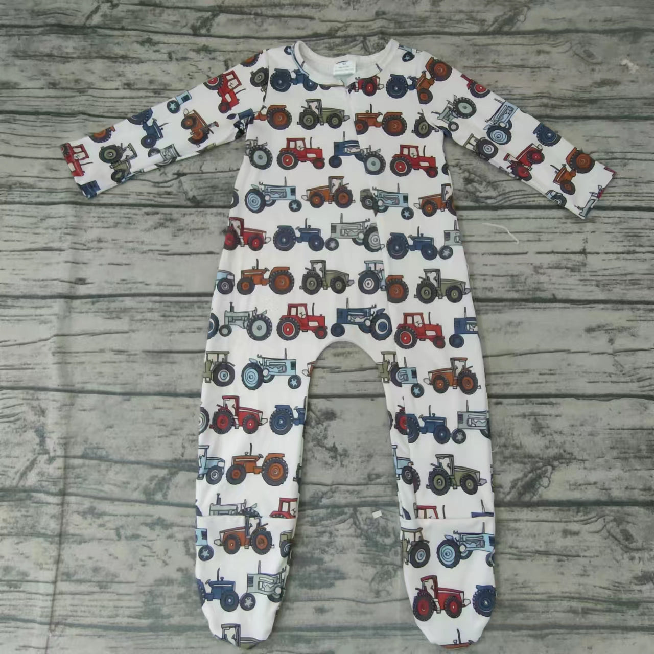 Baby kids fall zip tractor rompers