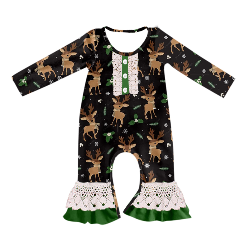 Baby Kids Infant Winter Deer Ruffle Rompers preorder(moq 5)