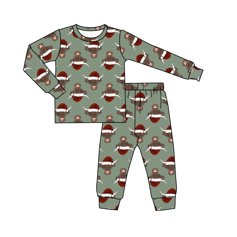 Baby Kids Western Christmas Highland Cow Pajamas Clothing Sets preorder(moq 5)