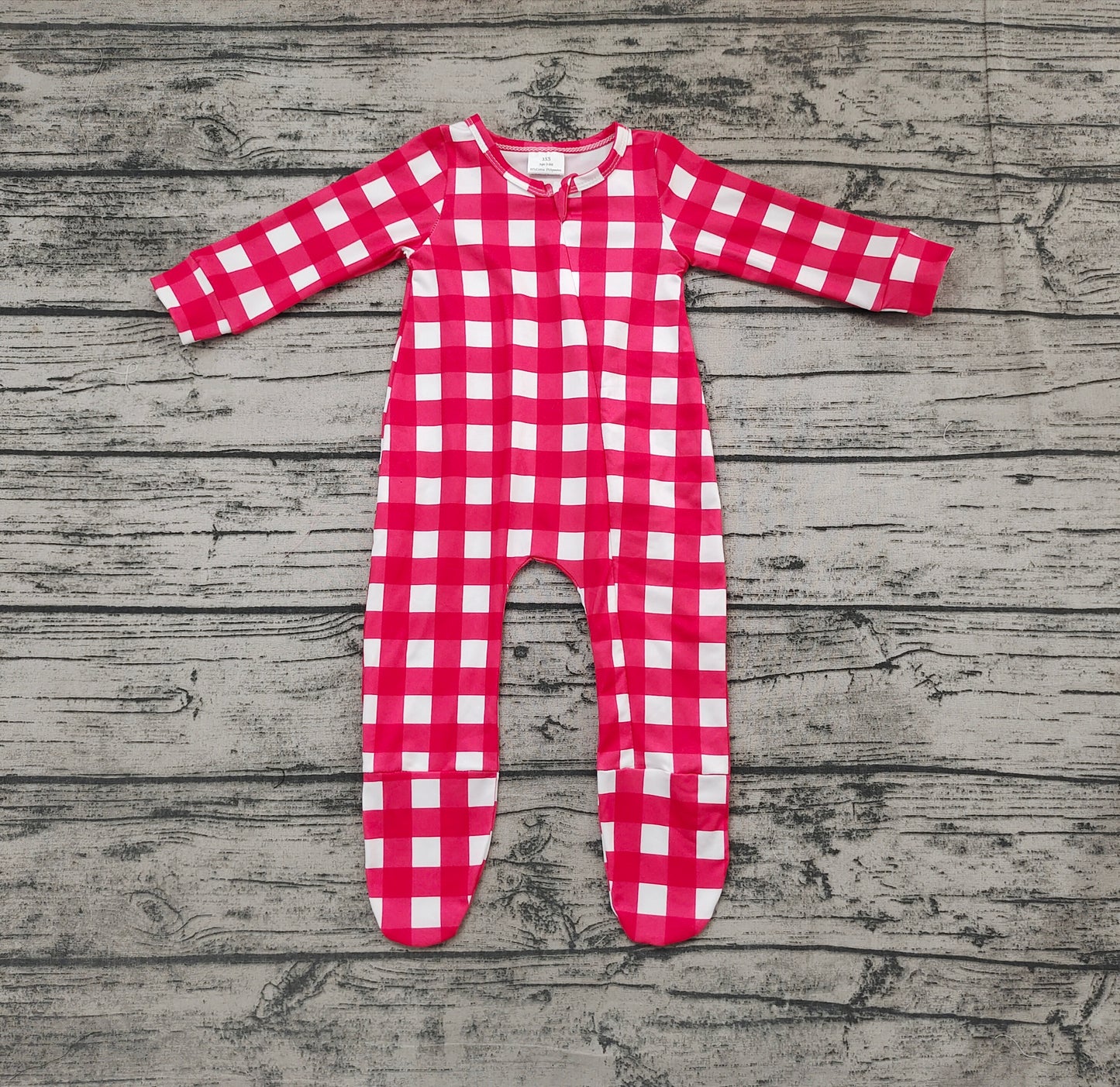 Baby Kids Zip Footie Christmas Red Checkered Color Winter Rompers