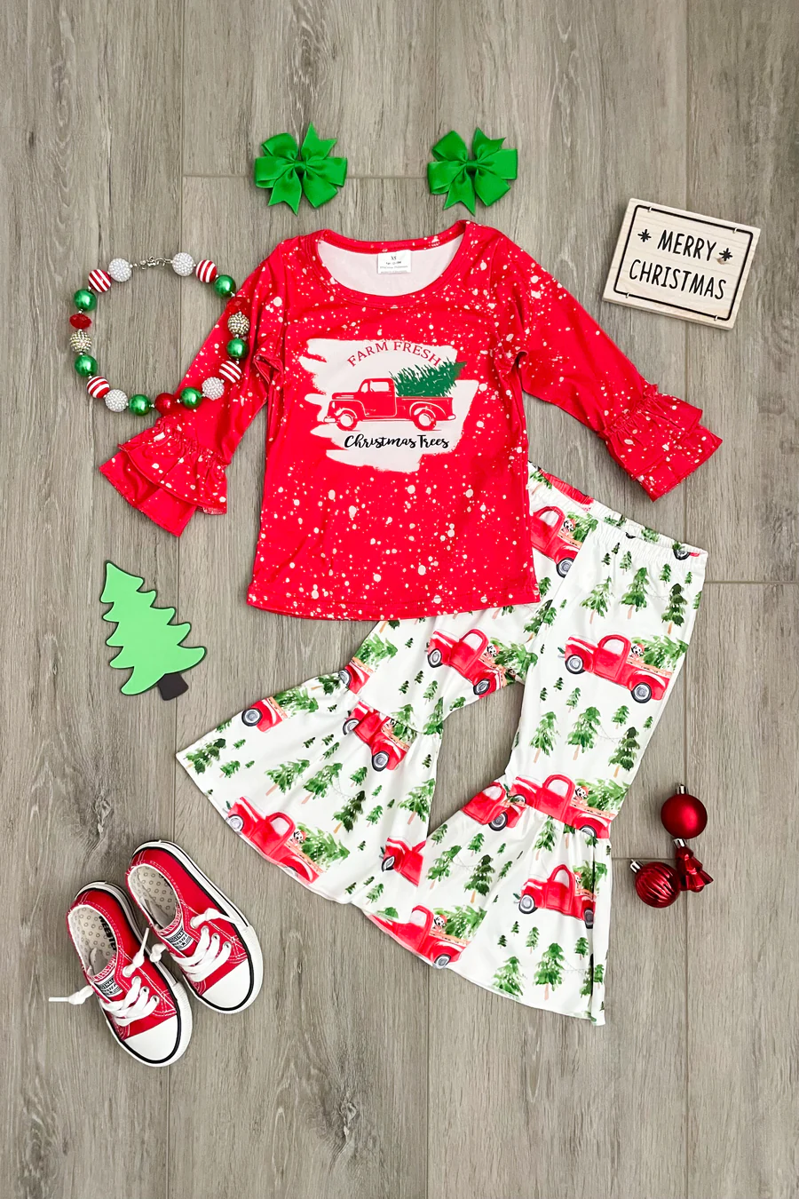 Baby Girls Christmas Tractor tree bell pants clothes sets