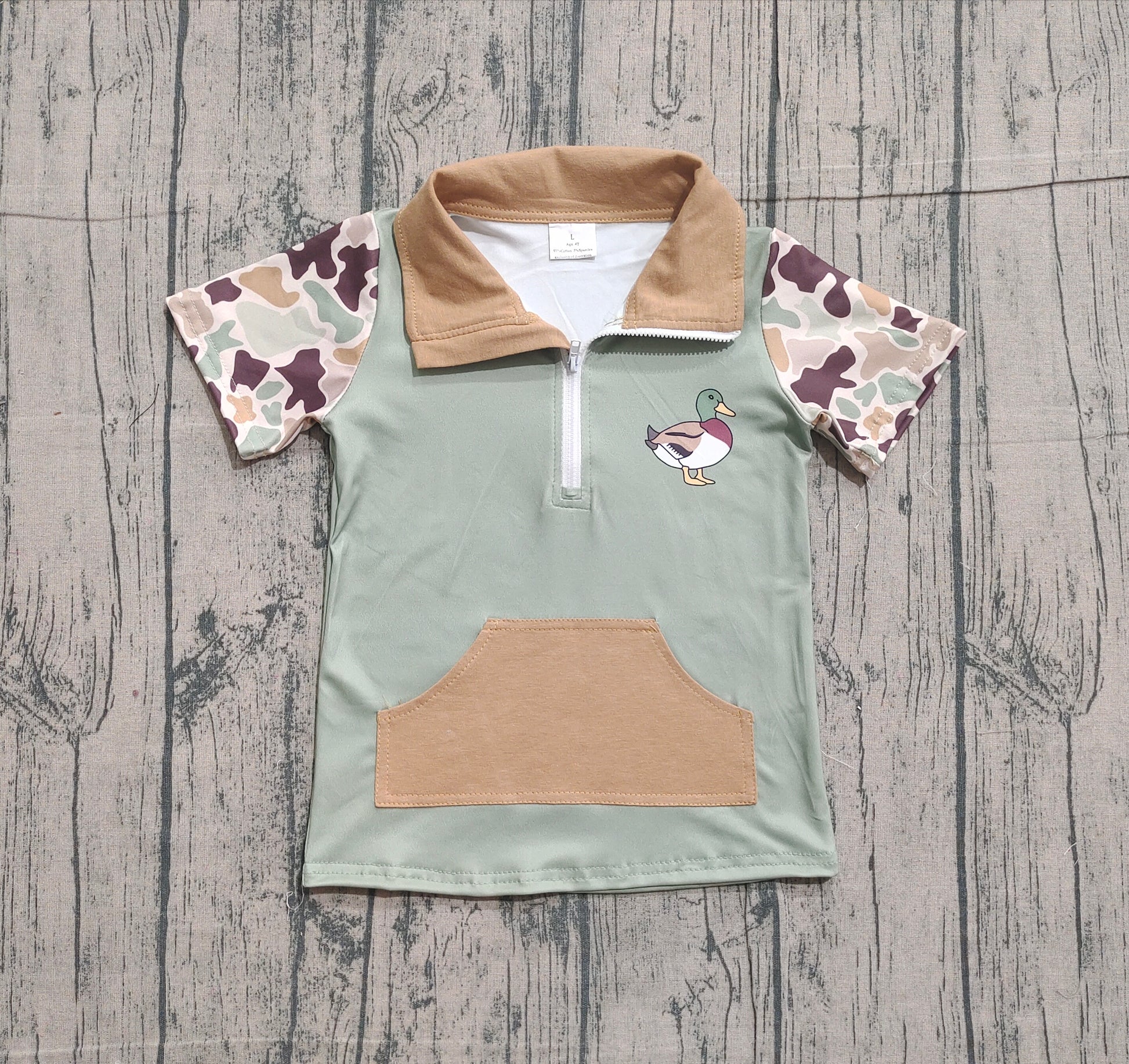 Baby Boys Green Camo Short Sleeve Ducks Zipper Pockets Hunting Pullovers Top Preorder