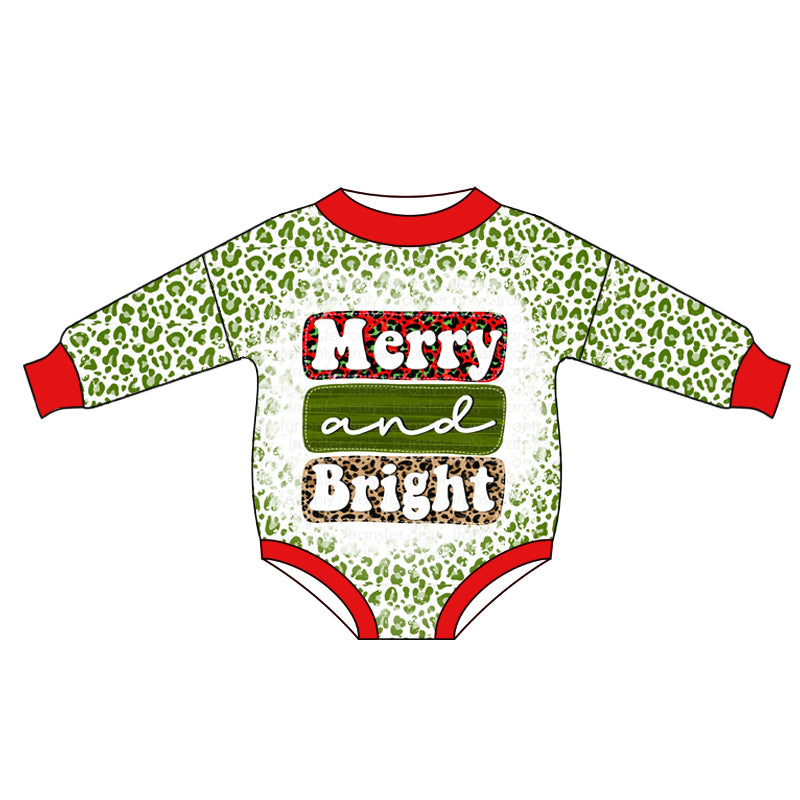 Christmas Bright Baby Girls Green Leopard Rompers preorder(moq 5)