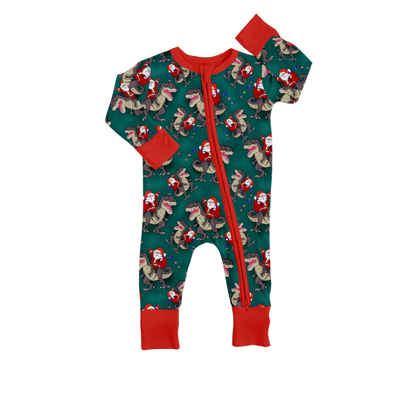 Christmas Santa Baby Boys Dinosaur Zip Rompers preorder(moq 5)