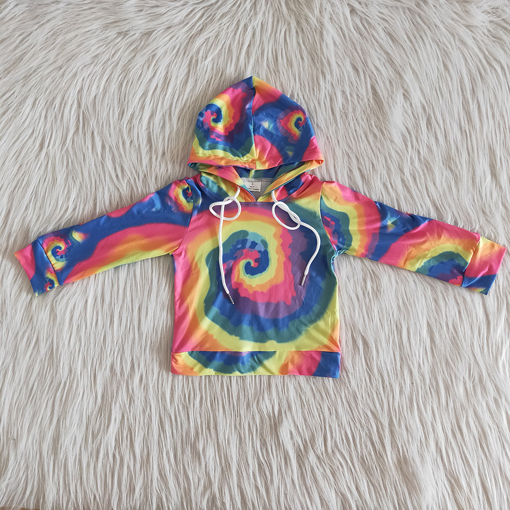 Colorful dark tie dye hoodie top