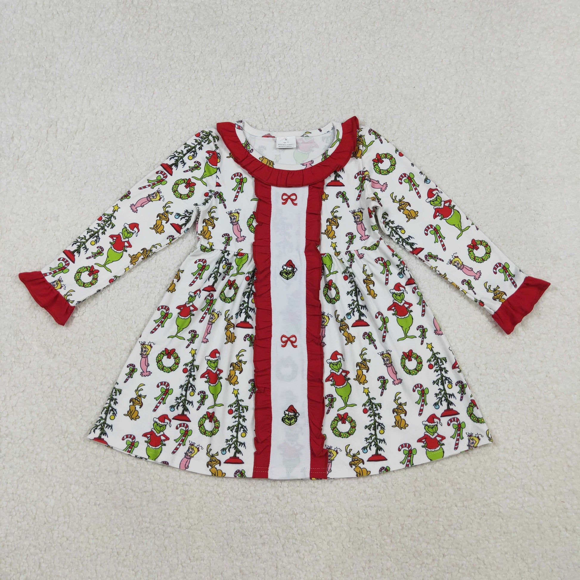 Embroidery Bows Grin Baby Girls Christmas Collar Knee Length Dresses