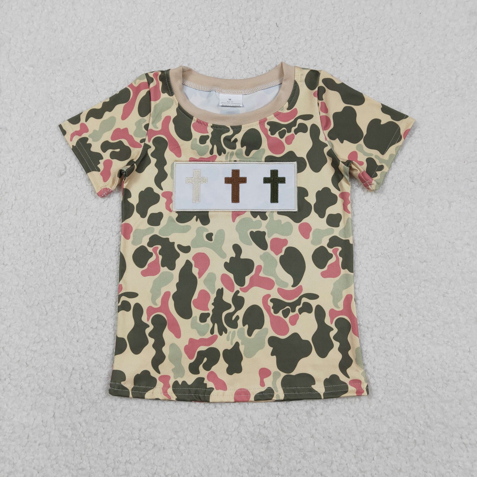 Embroidery Crosses Baby Boys Short Sleeve Camo Easter T-shirts Top
