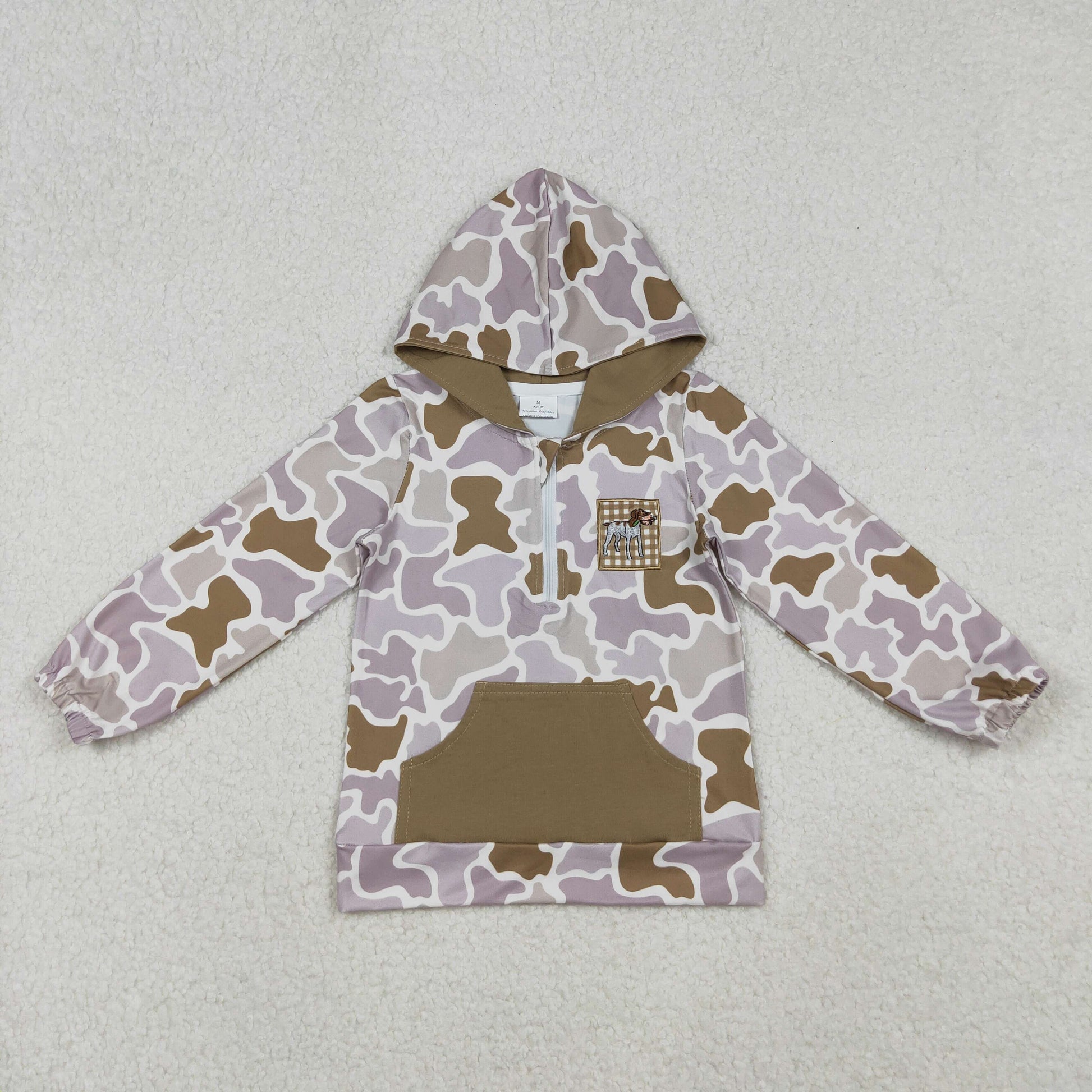 Embroidery Dog Duck Baby Boys Camo Pocket Zipper Hunting Hoodies Top