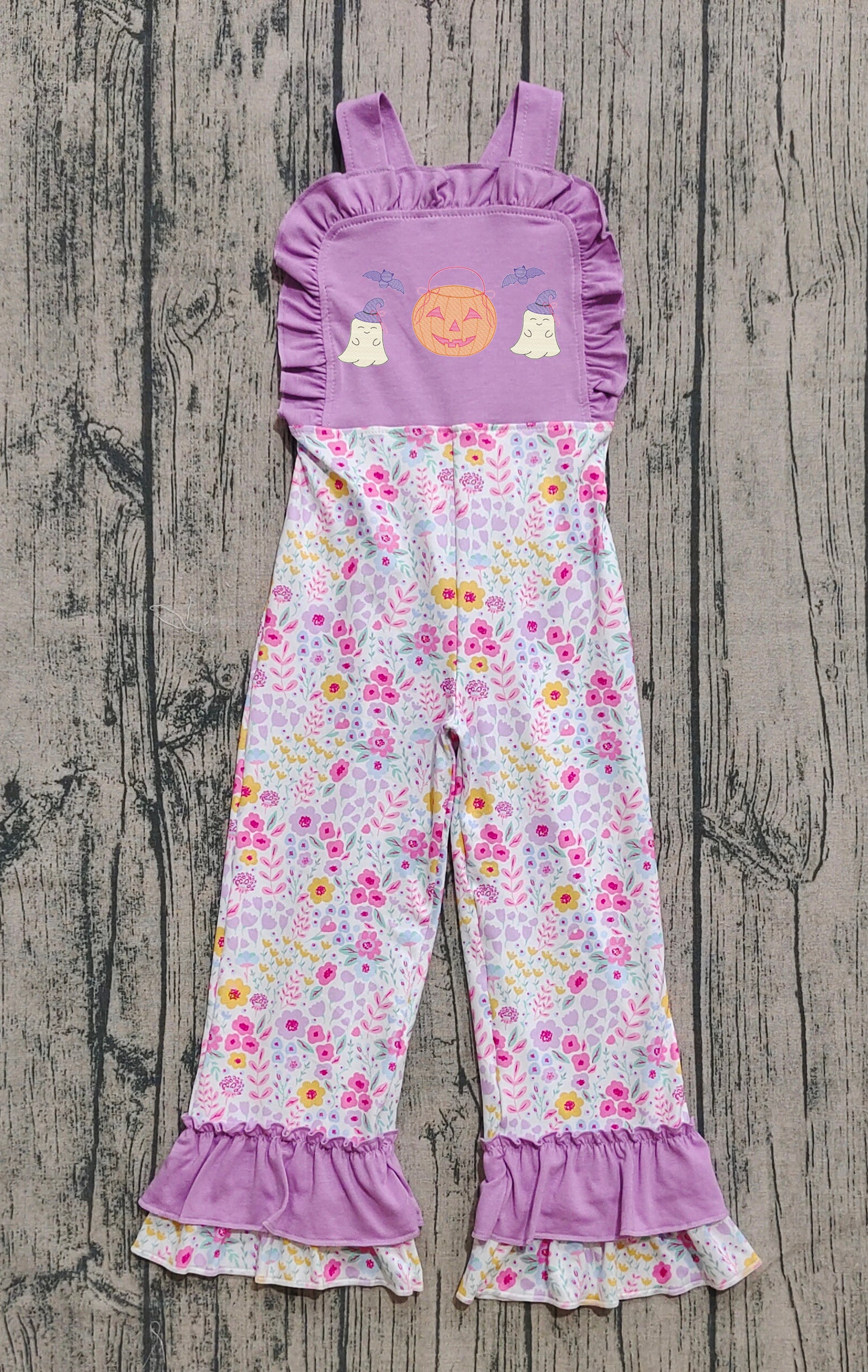 Embroidery Ghost Pumpkins Baby Girls Strap Floral Halloween Jumpsuits