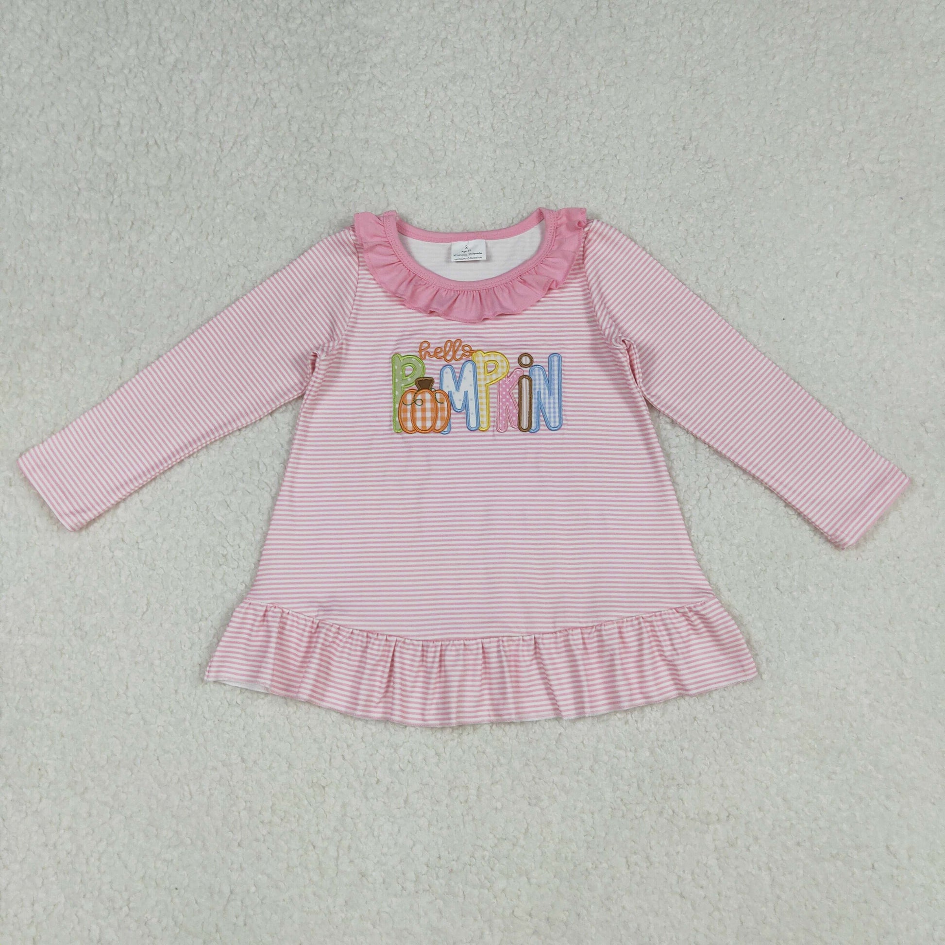 Embroidery Pumpkins Baby Girls Pink Stripe Fall Tee Shirts Top