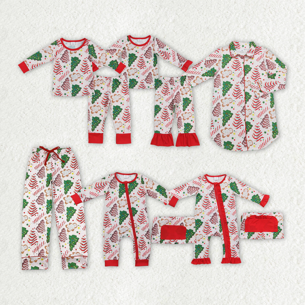 Family Christmas Tree Cake Shirt Pants Bamboo Rompers Pajamas Clothes Sets