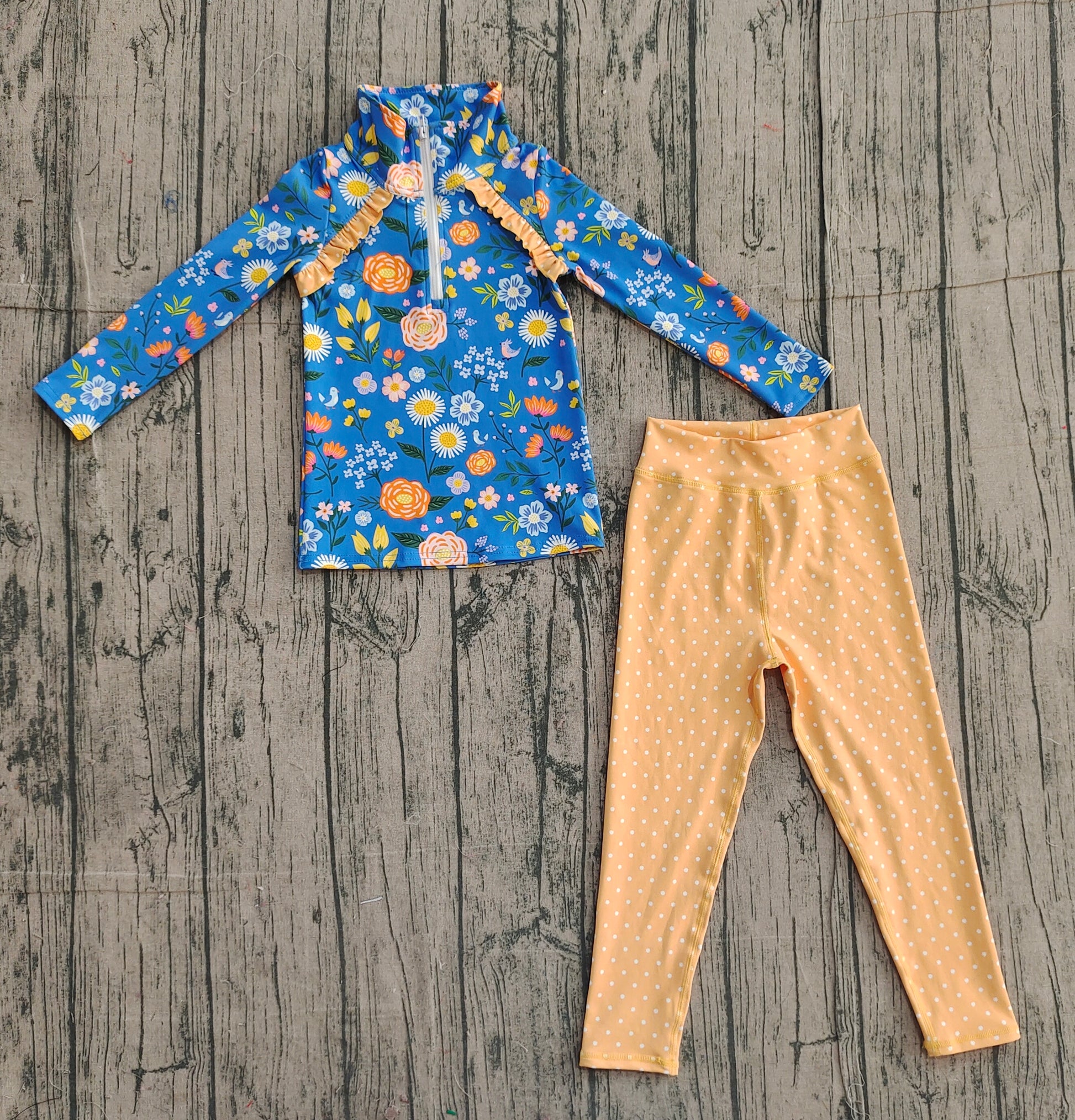 Baby Girls Flowers Zipper Pullover Leggings Pant Yoga Active Clothes Set Preorder