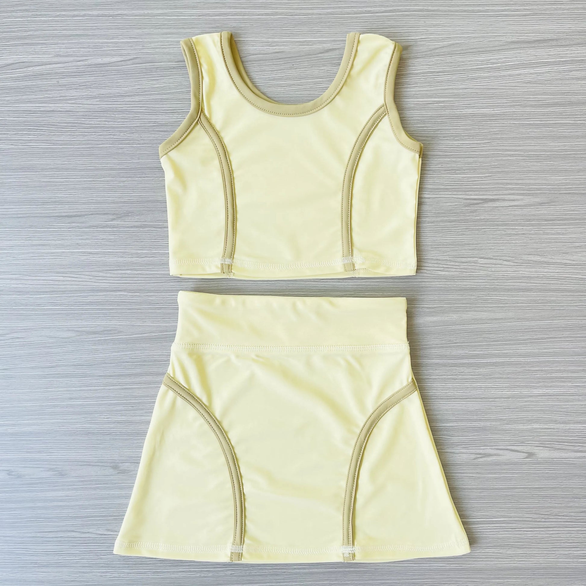 Preorder moq 5 Baby Girls Sleeveless Yellow Vest Top Skirts Set