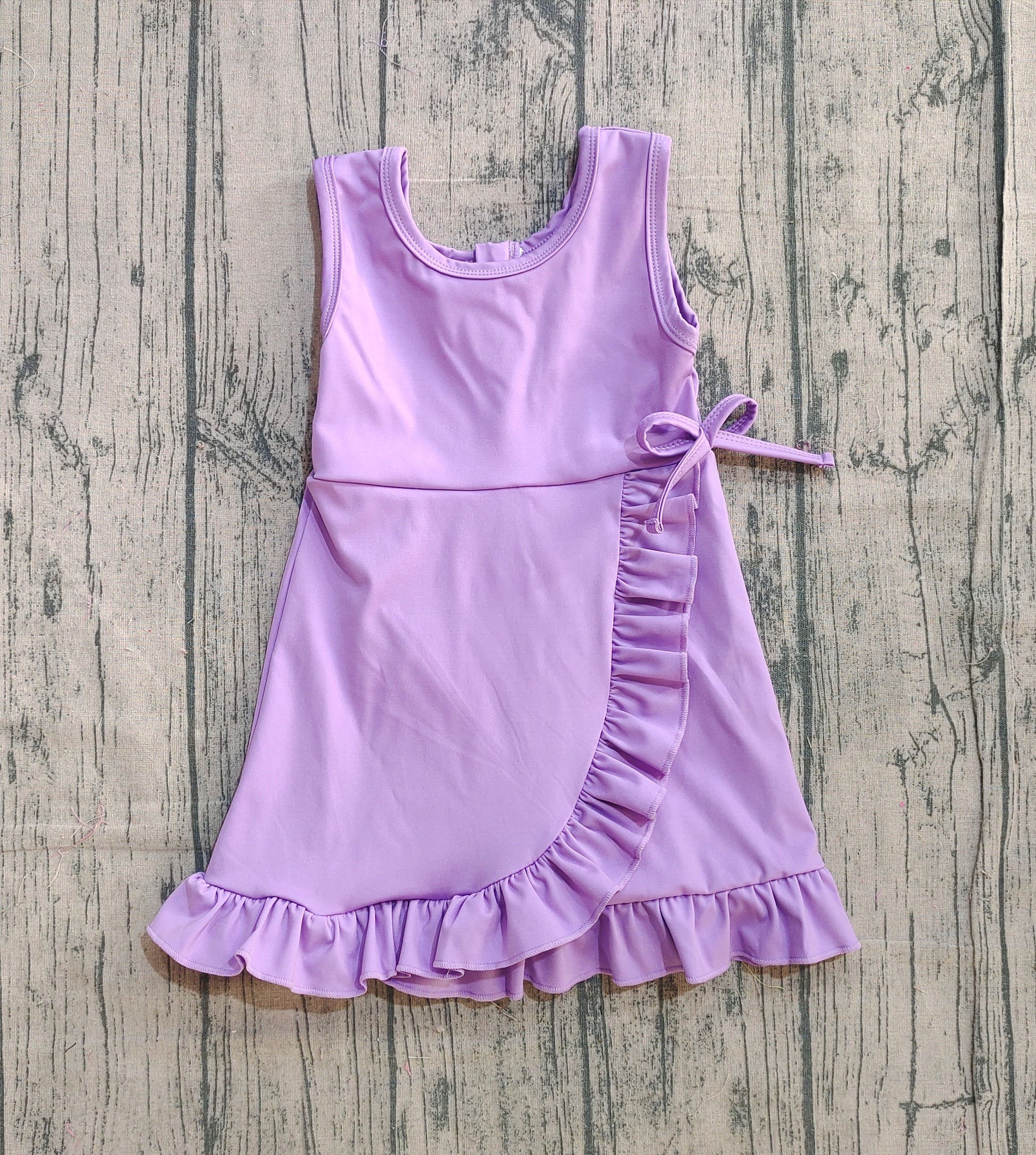 Baby Girls Purple Sleeveless Yoga Shorts Ruffle Knee Length Dresses Preorder