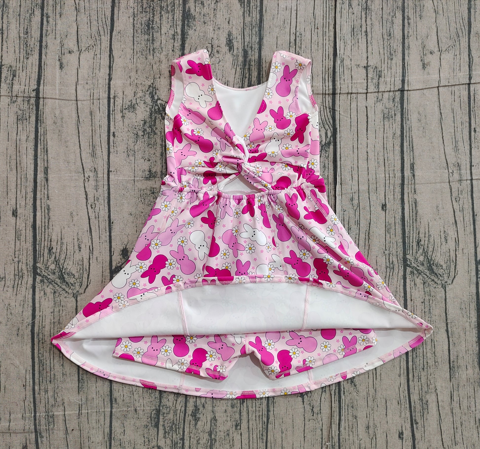 Baby Girls Sleeveless Pink Rabbits Daisy Easter Yoga Shorts Knee Length Dresses Preorder