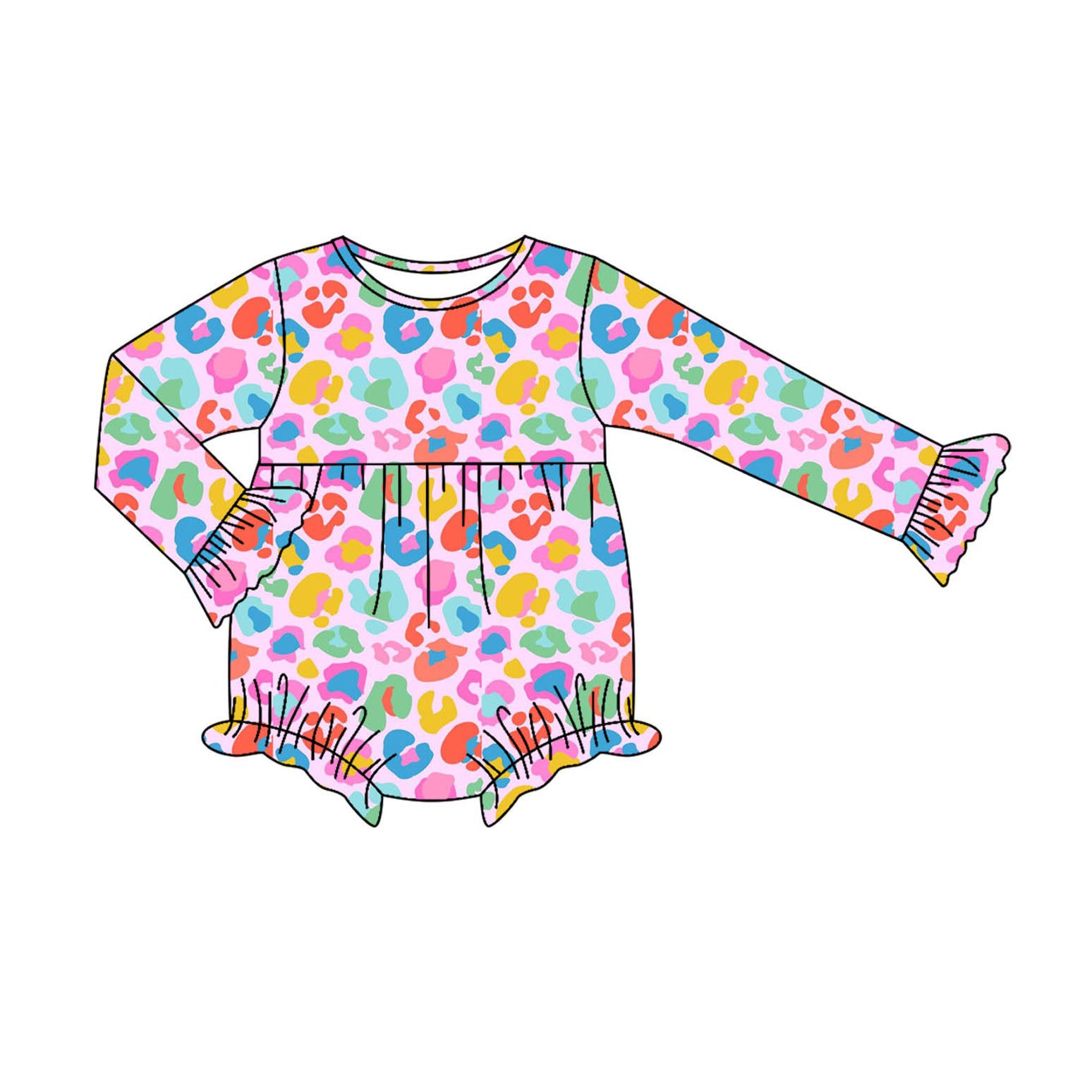 Baby Girls Long Sleeves Colorful Leopard Ruffle Rompers Preorder