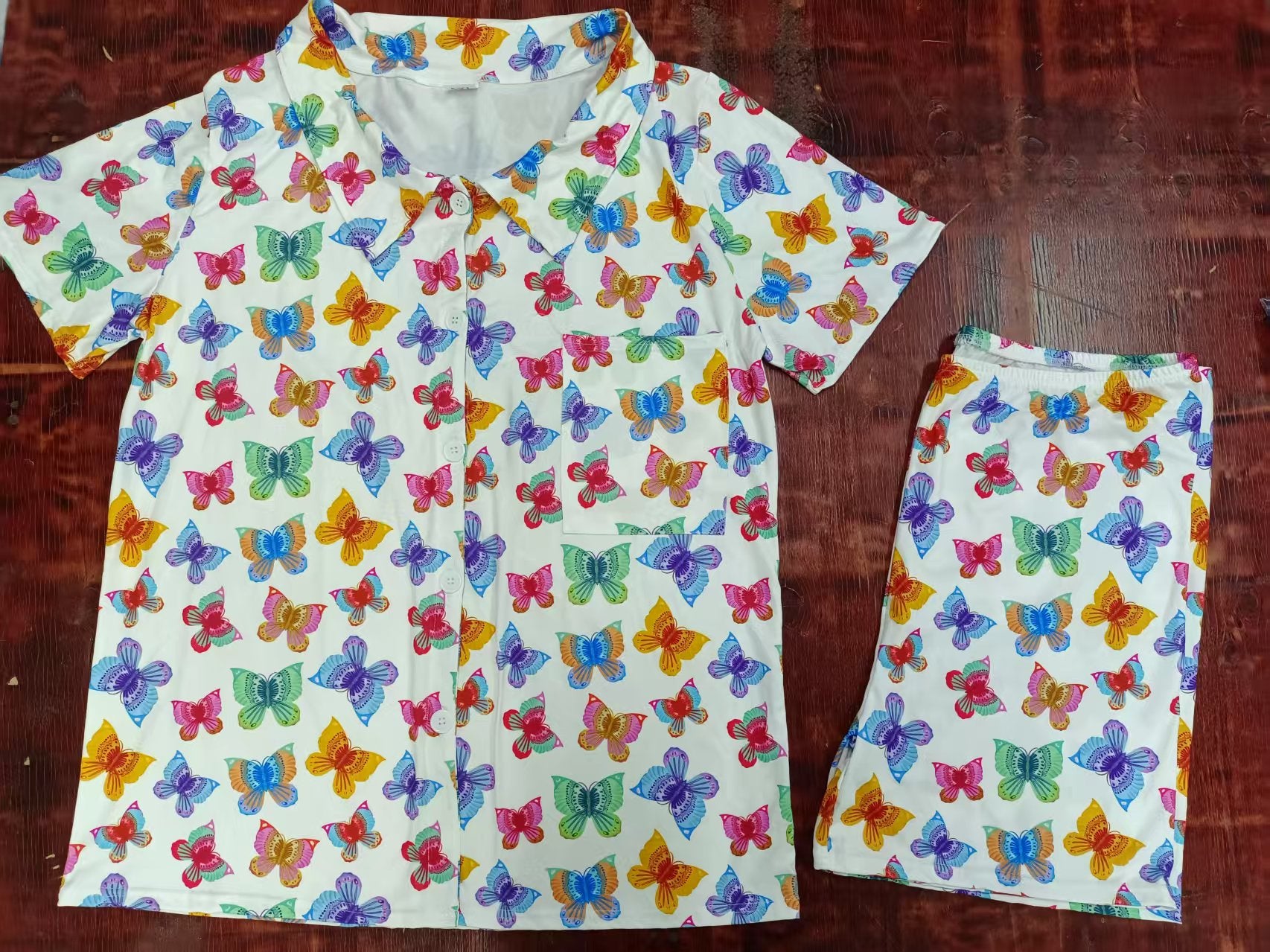 Preorder moq 5 Adult Women Colorful Butterfly Button Pocket Top Short Pajamas Set