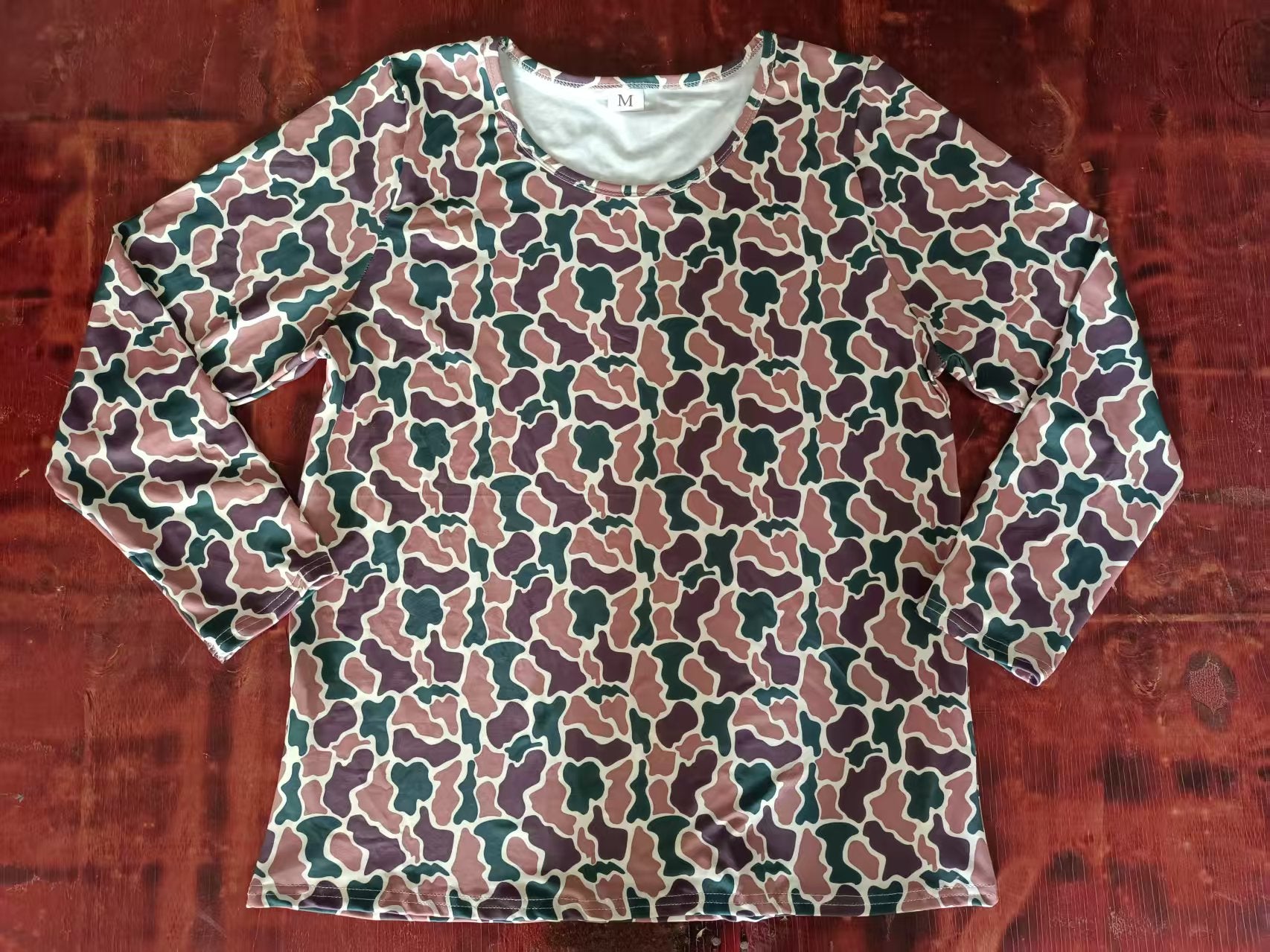 Preorder moq 5 Adult Women Long Sleeves Brown Green Camo Sleeper Tee Shirts Top