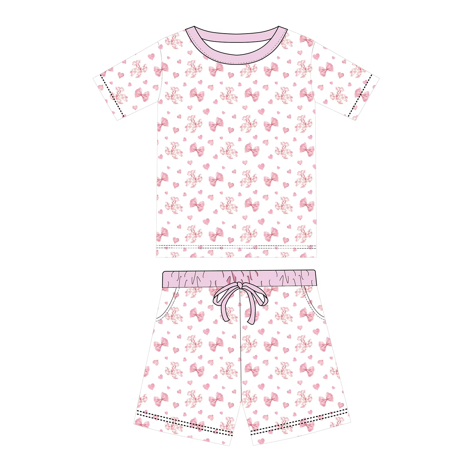 Preorder moq 5 Adult Women Pink Bows Hearts Top Pockets Short Pajamas Set