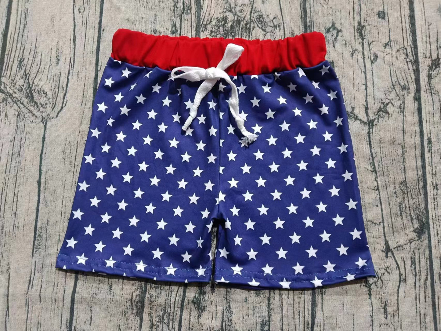 Preorder moq 5 Baby Boys Hot Blue Stars Plaid 4th Of July Shorts Bottoms