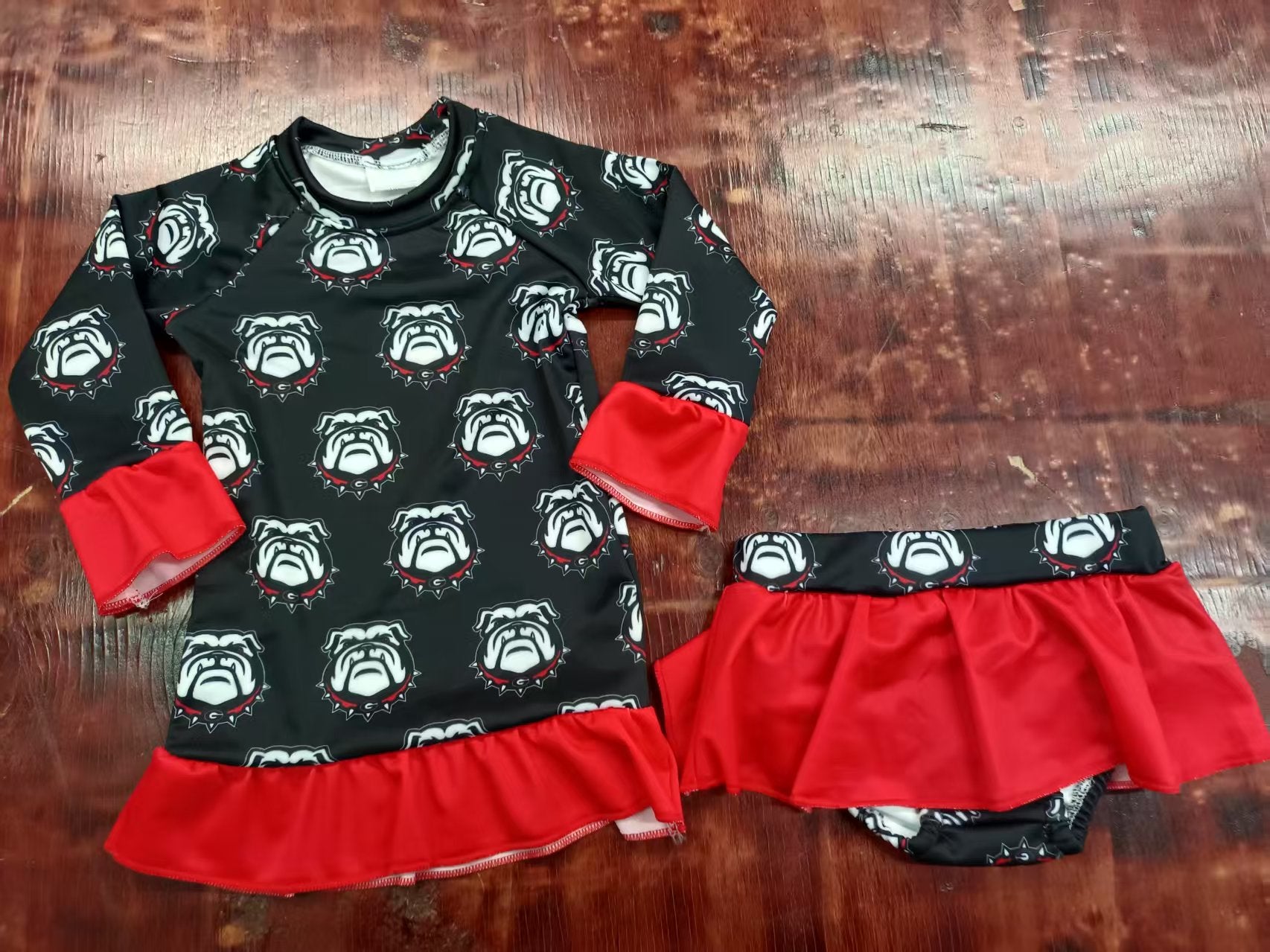 Preorder moq 5 Baby Girls Black Long Sleeves Dogs Top Bummies Skorts Set