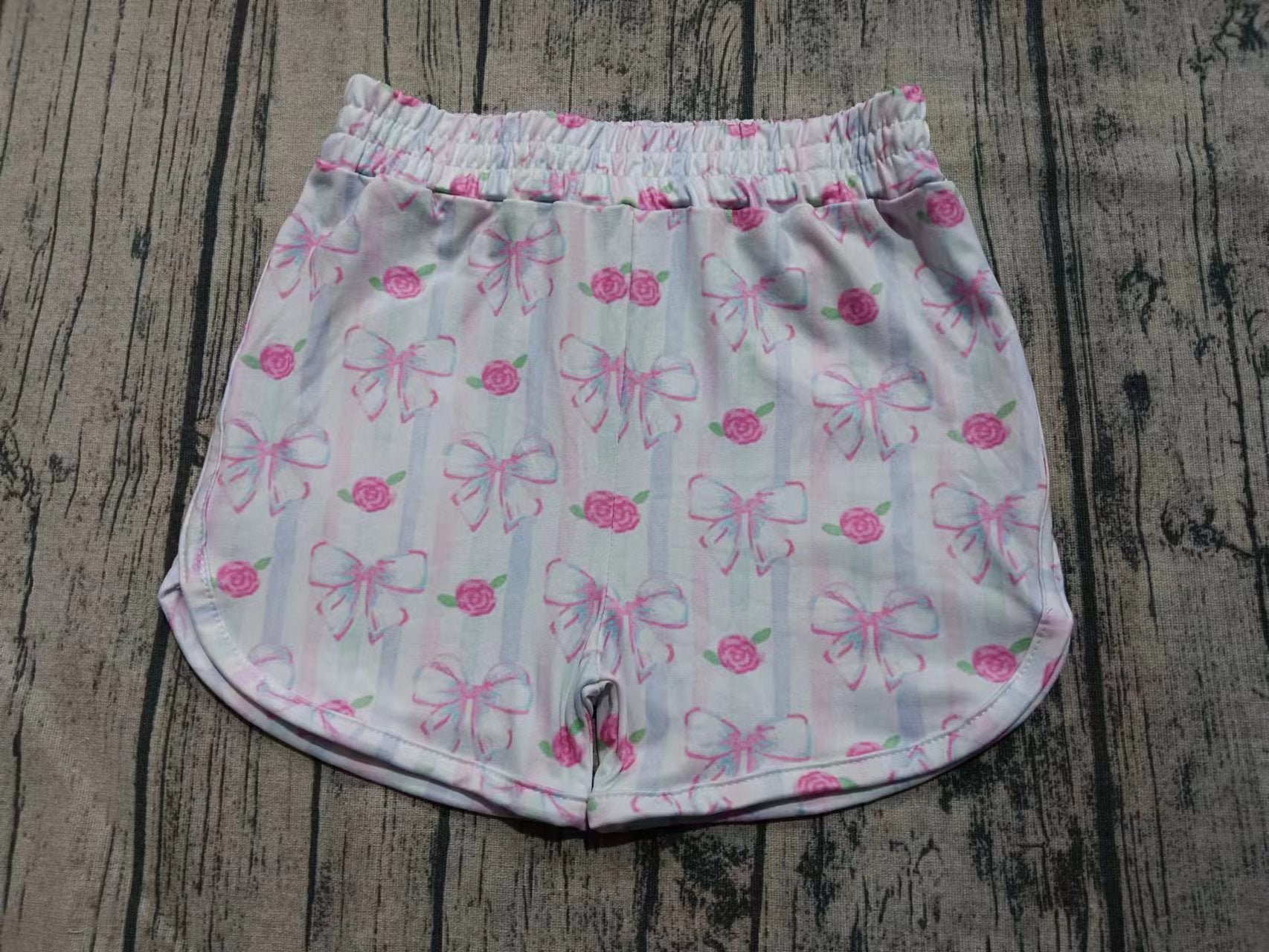 Preorder moq 5 Baby Girls Pink Stripes Bows Flowers Shorts Bottoms