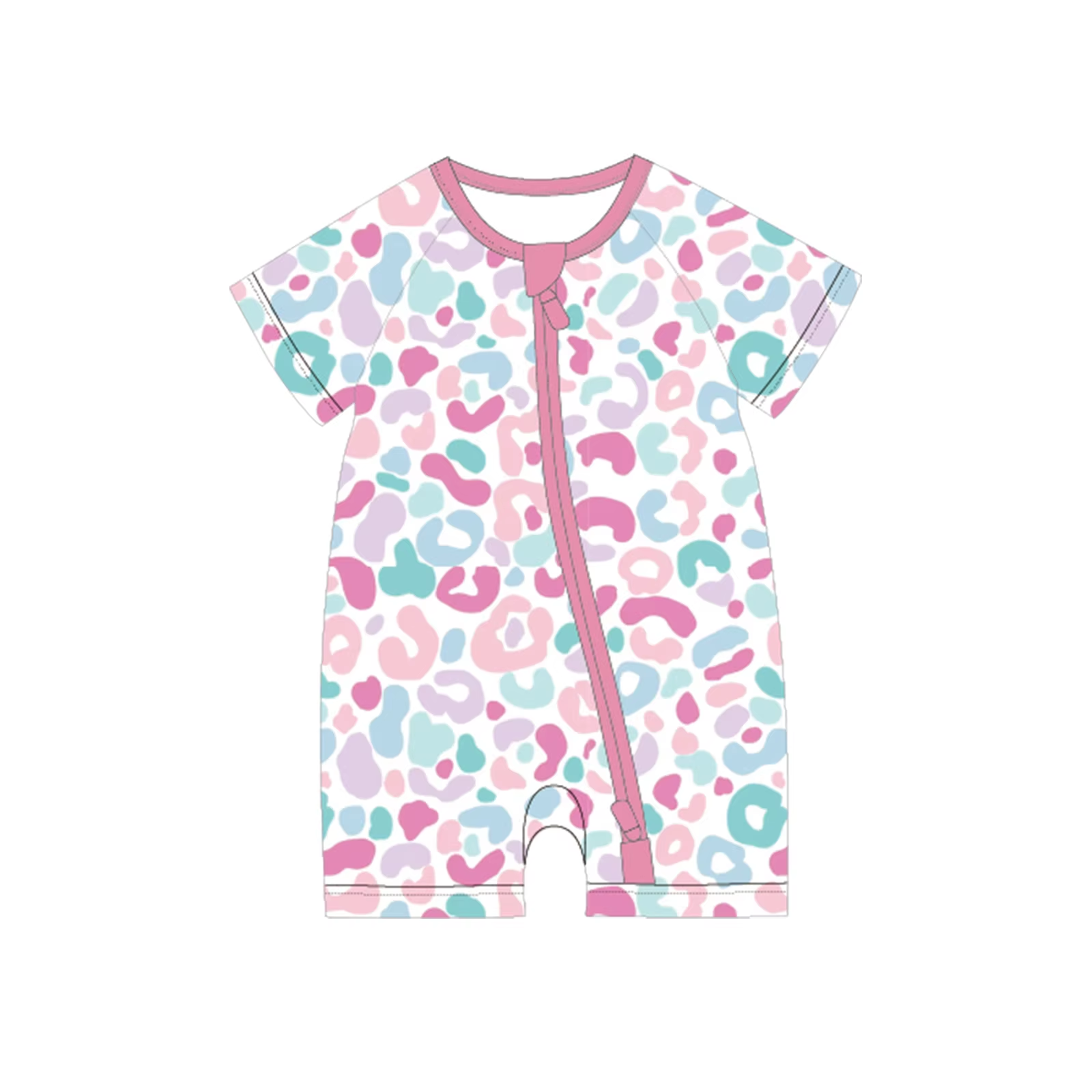 Preorder moq 5 Baby Girls Short Sleeves Colorful Leopard Zipper Rompers