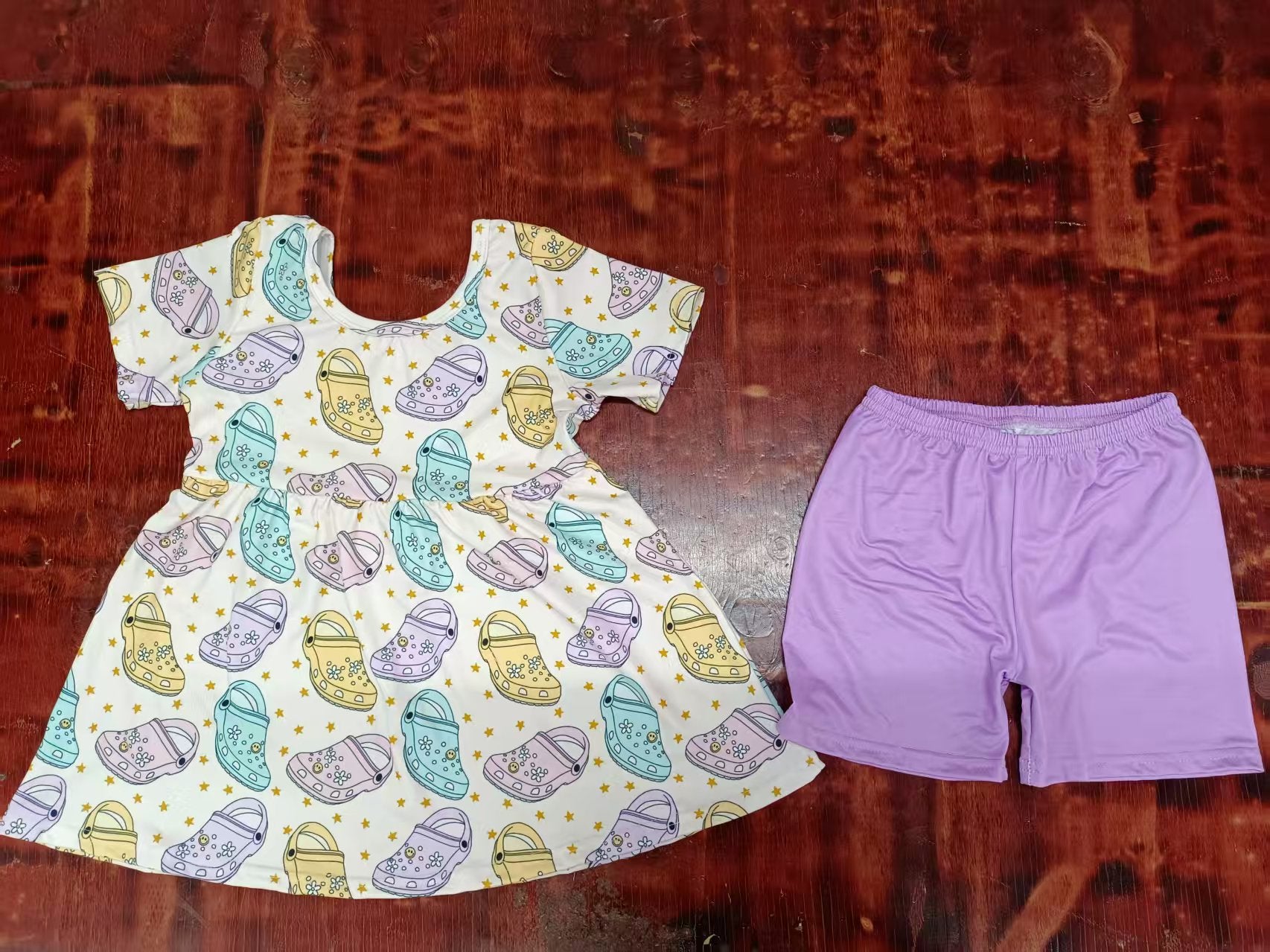 Preorder moq 5 Baby Girls Short Sleeves Stars Shoes Tunic Lavender Short Set
