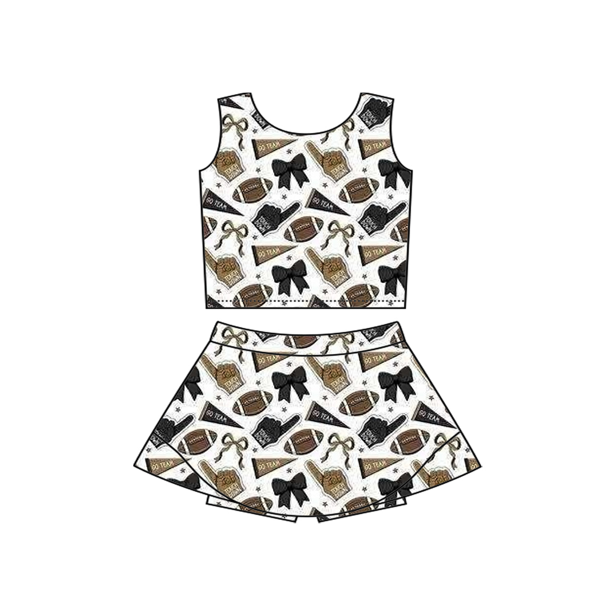 Preorder moq 5 Baby Girls Sleeveless Green Football Cheer Plaid Vest Top Skorts Team Set