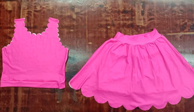 Preorder moq 5 Baby Girls Sleeveless Hot Pink Vest Top Ruffle Short Skirts Sets